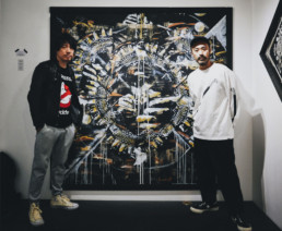 ギタリストの田中義人くんと「ARTMAN / BRAHMAN」展示会場にて。